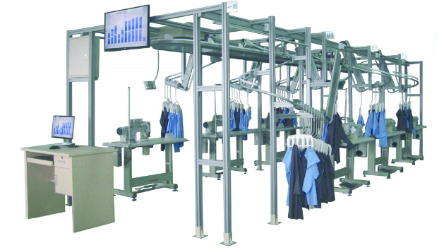 应用于服装生产缝制的智能传输系统。具有独立的数据库、RFID数据采集模块及OS界面操作系统